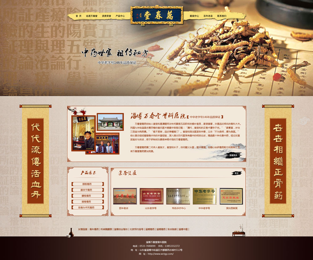 萬(wàn)春堂膏藥創(chuàng)始人崔寶和是清朝同治年間具有五品職銜的候補(bǔ)官員,家資雄厚,亦是遠(yuǎn)近聞名的骨科大夫。民國(guó)九年臨淄縣志第四卷的崔氏醫(yī)術(shù)病案中就有記載:“清代,崔寶和的正骨術(shù)著稱于世。”“家素富,歲出三百金為購(gòu)藥費(fèi)?!薄坝皇苤x,遠(yuǎn)近爭(zhēng)輳其門”。崔寶和效法醫(yī)圣張仲景,立志“不為良相,便為良醫(yī)。”他認(rèn)真總結(jié)祖輩接骨療傷的豐富經(jīng)驗(yàn),深入探討歷代醫(yī)學(xué)典籍中的相關(guān)論述,精選數(shù)十種名貴中藥,經(jīng)過(guò)反復(fù)實(shí)驗(yàn)反與改進(jìn),終于研制成功具有神奇療效的萬(wàn)春堂膏藥。