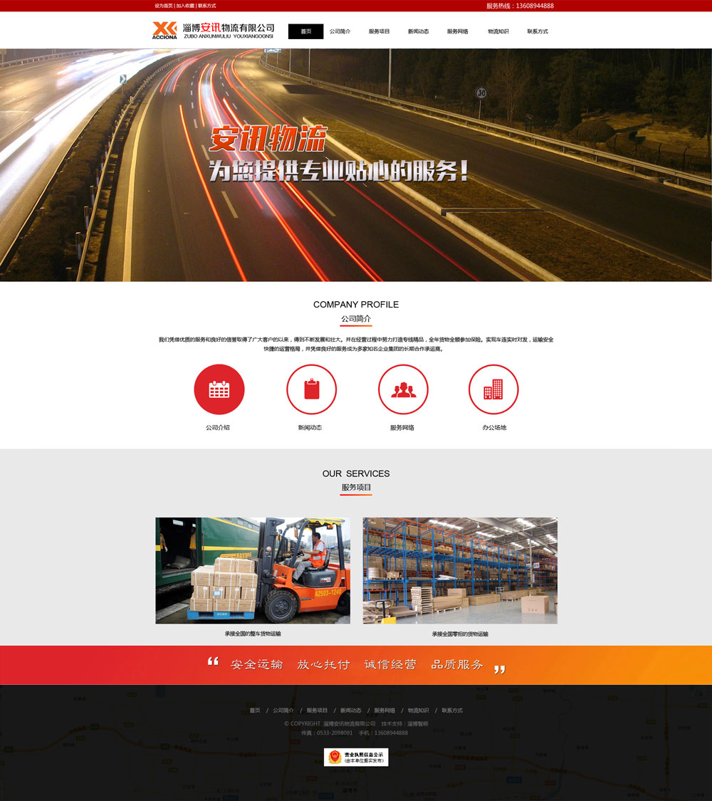 淄博安訊物流有限公司憑借優(yōu)質(zhì)的服務(wù)和良好的信譽取得了廣大客戶的信賴,公司的發(fā)展和壯大離不開客戶的信賴與支持。并在經(jīng)營過程中努力打造物流行業(yè)的精品,全年貨物全額參加保險,運輸安全,公司承諾貨物的丟失與損壞公司全額承擔,交貨時間按客戶要求交付貨物。